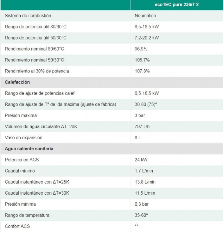 Caldera mixta ECOTEC PURE VMW 236/7-2 con precalentamiento de agua caliente
