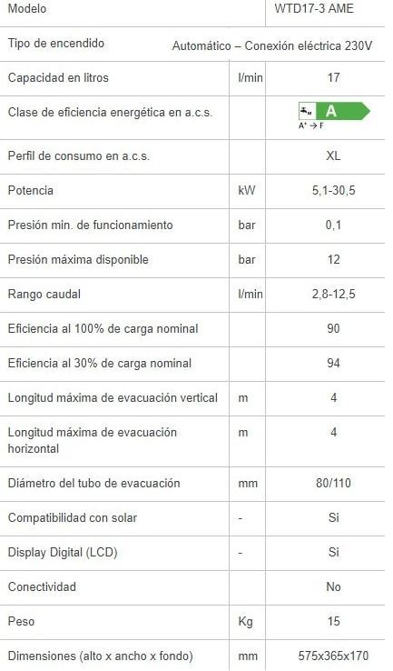 - Caudal de 17 litros / minuto (perfil de consumo M).