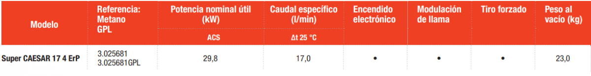 El calentador Immergas Super CAESAR 17 es de cámara estanca y se caracteriza por una tarjeta electrónica con microprocesador que garantiza un óptimo control de la temperatura del agua caliente a las utilidades. El dispositivo combina la flexibilidad de instalación, a 29,8 kW de potencia correspondiente a una capacidad de 17 l/min con salto térmico de 25ºC y la ventaja es que tiene dimensiones muy compactas.